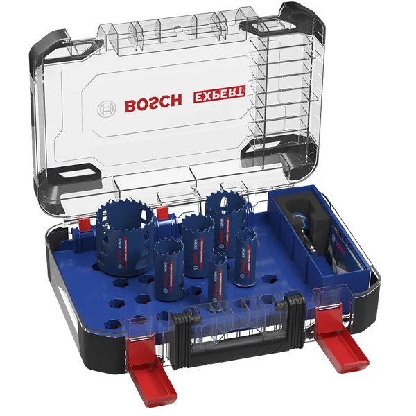 | Conditionnement | Coffret de 9 pièces : 6 scies cloches avec 1 adaptateur et 2 forets |
